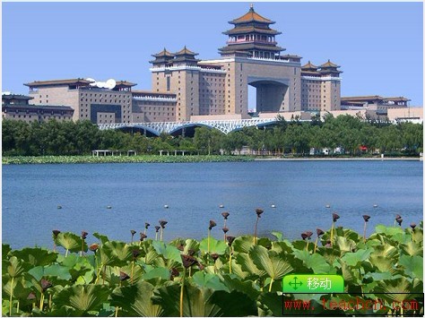 The park is exquisite, elegant and classical, where pavilions, rockeries, ponds, bridges, stones, fragrant flowers, luxuriant grass and trees are built and planted. On the both sides of the biggest pond, there are verdant Chinese pines, cedars, ginkgos, locust trees, white waxes, and magnolia trees. About 80,000 lotuses with 250 species or so are planted in the clear pond. The most stunning is the lotus scenery. In summer, all kinds of lotus flowers are in full bloom as if they are competing for the most beautiful title. As an ancient poem wrote: 'The Lotus leaves stretch to the sky a boundless green; the lotus flower in sunlight with unusual red to glow'. A breeze ripples with the surface of the hectares of the Lotus Pond, which forms a wonderful picture. A delicate white marble statue stands at the bank of the pond, telling a beautiful love tale between a Lotus-flower Fairy and Lotus-root Man. Next to the pond, there is an outdoor theatre with a stage in a 'T' style and music fountains pools on both sides. The pools are full of water lilies blooming different floral colors of summer.