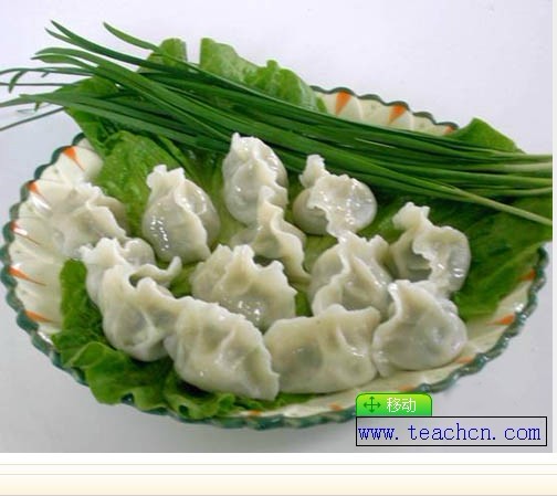 Chinese Dumplings: Chinese Dumplings look like silver ingots. Legend has it that the more dumplings you eat during New Year celebration, more money you can make in the New Year. Almost all Chinese people can make dumplings, first mix the dough, second make the dough into wrappers by a rolling pin, third fill the wrappers with pork, beef, vegetable, fish or anything else can be used as stuffing.