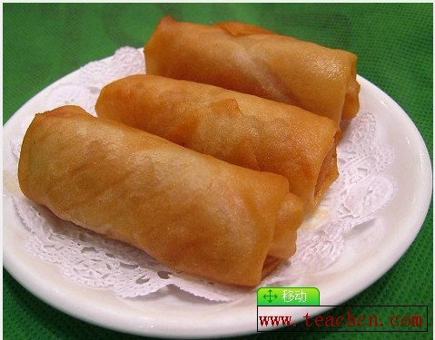 Spring Roll: People like Spring Roll because they are nutritious and delicious. Spring Rolls contain pork and vegetable. They can be easily taken on picnics. They get their name because they are traditionally eaten during Chinese New Year Celebration.