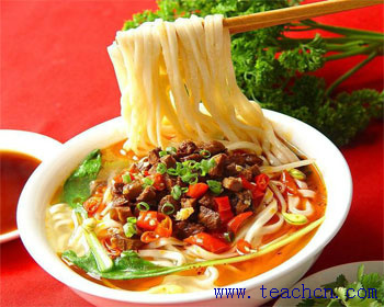 Guilin is has been attracting tourists throughout the world by its natural beauty . Another thing Guilin offers besides it scenery is its rice noodles, which city folk in Beijing and Shanghai gobble up with gusto. Small Guilin rice noodle restaurants have spread to almost every street in Beijing in recent years, and they are usually packed with young professionals from neighboring office buildings at lunch time. The rice noodles are made from water and rice flour, making them easier to digest than regular flour noodles. They are usually served with different kinds of meat or meatballs, lettuce and peanuts. Peppers and vinegar are added by the diners.