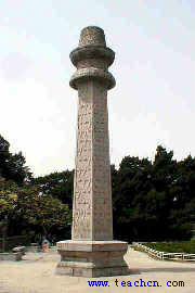 Inside the gate hall, there is a pavilion which houses Dr. Sun's memorial tablet, a huge stone stele about 6 meters in height. Behind this and at the end to steps is the main memorial hall, consisting of the sacrificial hall and the coffin chamber. On the eighth terrace there is a pair of ancient Chinese ornamental columns (Huabiao), standing respectively on each side of the 12.6 meters high memorial hall.