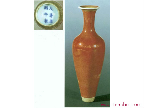 In Shanghai, a cowpea-red glazed vase of fine and delicate quality is displayed in the Shanghai Museum.
