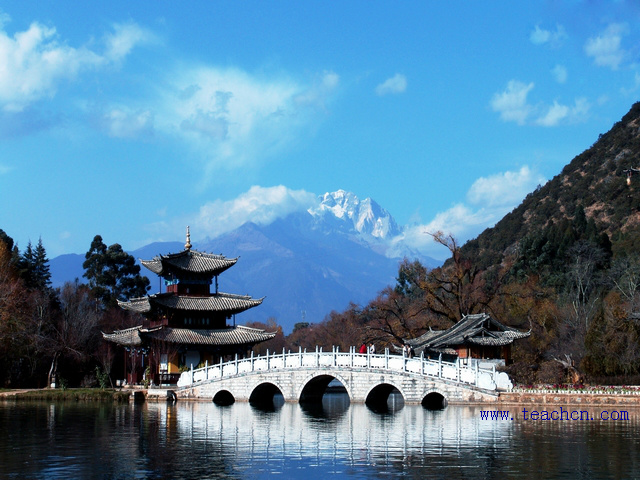 There are natural scenic places in the city and close to it that are worth visiting. There are two small parks. Next to the Dayan Ancient City District is Yuquan Park that includes part of a hill overlooking the city and Black Dragon Pool. The hill and the Black Dragon Pool (Heilongtan) area have old temples you can see. You can also see a beautiful view of the Yulong Snow Mountains from the park area. Next to Shuhe Ancient Town is another small park called World Yichan Park. It doesn’t have a hill. Those would be places to go any time of the year while strolling around in the ancient districts.
