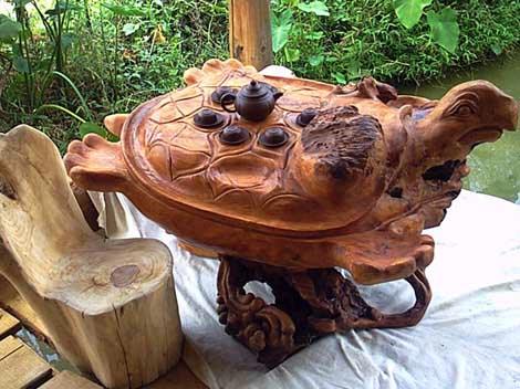 There are three major types of root carving: 1) for natural root material with flaws, carving is used to remedy the flaws; 2) thorough carving, which means carving shapeless root material into a work of art; 3) taking advantage of the natural shape of the root material; for example, carving a head or a face in part of the material, leaving the rest unchanged. This is to integrate the natural beauty with artificial art, making them complementary to each other and bringing a wonderful enjoyment to anyone who sees the work.