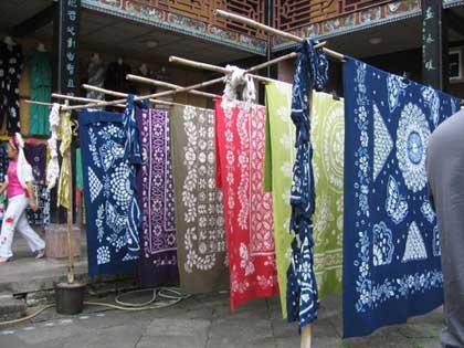 The embroidery and dyeing skill of Bai ethnic group in Dali is a traditional folk craft of the Bai people. There are many different kinds of Bai embroidery and dyeing products, and most of their patterns are natural dermatoglyphic patterns in even arrangement expressing the auspiciousness meaning, so they are embodied with significant aesthetic value and utility function. The embroidery and dyeing products usually take white cotton cloth and mixed fabric of cotton and linen as raw material, and its dyes are usually made from the crude indigo succus in the Polygonum tinctorium Ait, radix isatidis, mugwort and other naturak plants, particularly from radix isatidis. In March and April every year, the Bai people reap the radix isatidis and extrude succus out, and then pour the succus into a large dye vat and adulterate it with some lime or industrial alkali. Finally it could be used to dye the cloth.