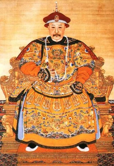 In the Qing Dynasty only Emperors had the privilege of wearing the dragon robes decorative of the dragons with 12 insignia badges, whose designing include circular collar,big front,right border(opening),narrow and comprehensive sleeves with sleeve end of horse shoes shape.The demy front and back of the robe was sumptuously embroidered 9 dragons and embellished with gold, pearls and precious stones. In the front of the robe collar was embroidered with one front dragon each and at the joining of the left and right borders have decorative dragons each, while there is a front dragon at the end of horseheel-shaped sleeves. The collar and sleeves were brimmed with azurite gold satins. The clothing materials could be changed according to seasons, for instance, cotton, gauge, sandwich blend, or fur, etc.