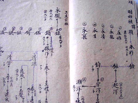 "Shi xi" or "family pedigree" is a list of the relationship between members of a family as well as events happened in the family. And the lineage illustrated in the form of a chart is called "a shi xi biao" or "a pedigree chart". In the chart, the closeness, origin, procreation and marriages of all family members are documented in detail from the first ancestor to the date of the chart editing. The keeping of a pedigree chart reflects the traditional Chinese family view.