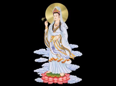 Kwan-yin ("Goddess of Mercy") was translated from "Avalokites' Vara" in Sanskrit. As one of the four major Bodhisattvas in Buddhism, he is highly valued by Buddhists in China. With dignified and kind facial appearance, Kwan-yin, who holds a clean bottle with a twig of willow in his hand, is regarded to have infinite wisdom and theurgy. He was said to be infinitely merciful and apt at rescuing the human world from disasters as well as hearing and viewing tribulations in it. Therefore, he was called "Goddess of Mercy".