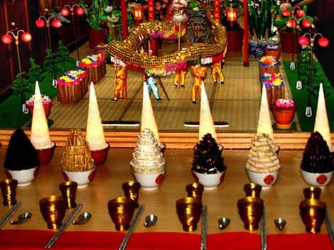 The food customs in each place for the festival are not necessarily the same but are all called having propitious food. Dumplings, noodles, deep-fried twisted dough sticks and wontons are mostly included, among which the most famous is the Qiaoguo (Fried Thin Paste).