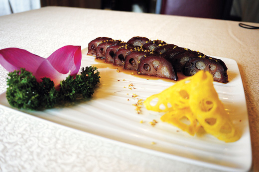 "Besides balancing flavor, lotus root adds more texture," chef Gu says.