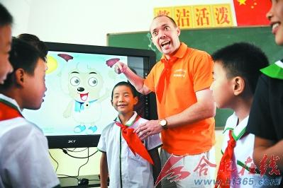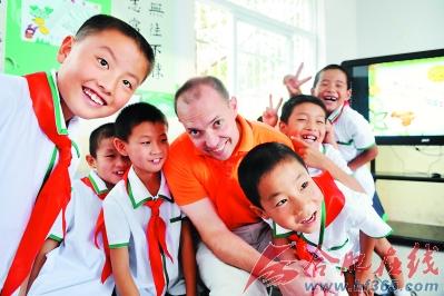新街小学原是烟墩街道一个偏远村小,新学期开始,这个村小不仅有了焕然一新的校舍、桌椅、教学设备,还迎来一位长期的外教“犇龙”(Ben),这在全省应该还是第一次。“犇龙”来自美国,高大阳光的他出现在大家面前时,孩子们就一起大声呼喊起来:“Ben!Ben!”犇龙的汉语名是英语名音译过来的,“牛在中国是很厉害的,我想三个牛在一起肯定是最牛的。”犇龙开玩笑地说,希望自己能做一个最牛的英语外教。