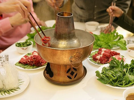 Instead of having food served on individual plates, the Chinese eat from a common dish in the middle of a round table. Diners are expected to place food on a small plate or on a bowl of rice in front of them but often they plunge their chopsticks into a shared dish and eat straight from that. When eating Chinese reach across one another, pass dishes, pour each other drinks and put food on each other’s plate.