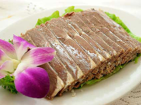 2.Take the meat out. Get rid of the scallions and ginger. When the meat is cool, cut it into slices and sprinkle on the soy sauce to serve.