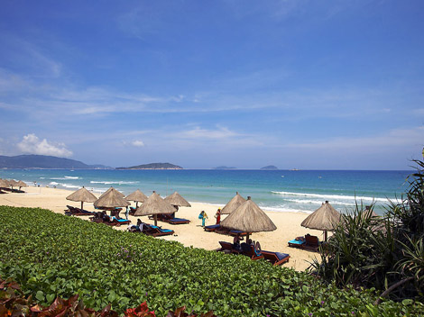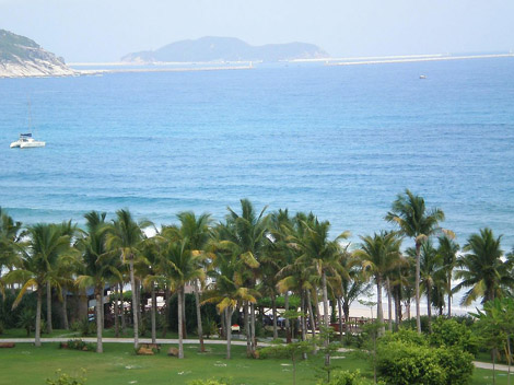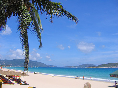 With the average temperature a pleasant 25.5 C all year-round, Yalong Bay is situated in the southernmost part of Hainan Province, 25 kilometers (about 15.5 miles) away from the tropical seaside tourist city, Sanya. The scenery is amazing, with endless rolling hills, serene gulfs, clear blue sea and silvery sand beaches--three times as long as any in Hawaii. Home to several well-preserved coral reefs with tropical fish of varied kinds, colors and shapes, the ocean here is crystal clear, allowing visitors to view underwater sights up to 10 meters (33 feet) deep from the surface.