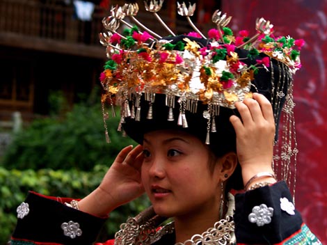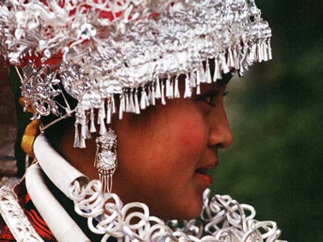 The fine embroidery and intricate silver ornamentation of Miao ethnic minority wedding costumes impress many of the domestic and overseas visitors to Miao villages.