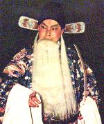 The red face Lao Sheng, or Hong Sheng has only two roles. One of such a role is Guan Gong who is regarded as the God of War. He is greatly revered and respected. Guan Gong is one of the heroes of the Chinese classical novel The Romance of the Three Kingdoms. The other Hong Sheng role is Zhao Kuang-Yin, the first Song Dynasty Emperor.