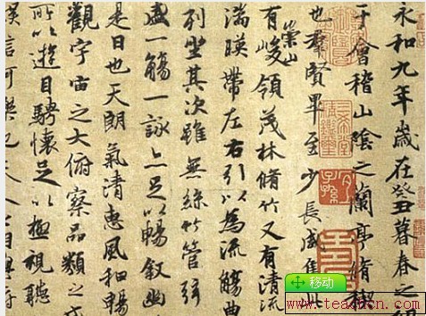 Wangxizi, a well-apprasied and famous calligrapher in Chinese literature history is more widely outstanding by his famous work as The Lantingji Xu (兰亭集序; literally "Preface to the Poems Composed at the Orchid Pavilion") or Lanting Xu (兰亭序) is the most famous work of calligraphy by Wang Xizhi, composed in year 353. Written in semi-cursive script, it is the most well-known and well-copied piece ever. It describes a gathering of 42 literati including Xie An and Sun Chuo (孙绰) at the Orchid Pavilion near Shaoxing, Zhejiang, during the Spring Purification Festival to compose poems and enjoy the wine. The gentlemen had engaged in a drinking contest: wine cups were floated down a small winding creek as the men sat along its banks; whenever a cup stopped, the man closest to the cup was required to empty it and write a poem. In the end, twenty-six of the participants composed thirty-seven poems.